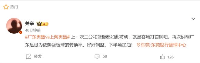 广东记者关辛:上一场三分、篮板如此被动还是客场打北京吧。再次说明广东是极为依赖篮板球的转换率。