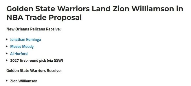 炸裂!勇士,锡安!4换1交易方案曝光...