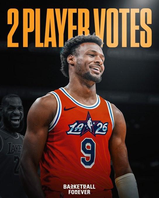 据记者Tim Reynolds报道,在本次投票中,湖人队后卫布朗尼也获得了球员投出的2票。这也让他排在本次投票的第46位。