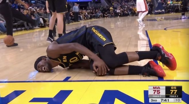 勇士官宣:巴特勒右膝受伤痛苦倒地退赛 被搀扶离场无奈咧嘴笑