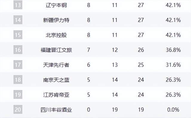 广厦输球仍第1,广东追平豪门,山东逼近前4,辽宁第13,黑马陨落