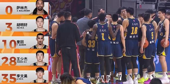 广东队先发:后场胡明轩李文昊,前场奎因萨林杰王少杰。