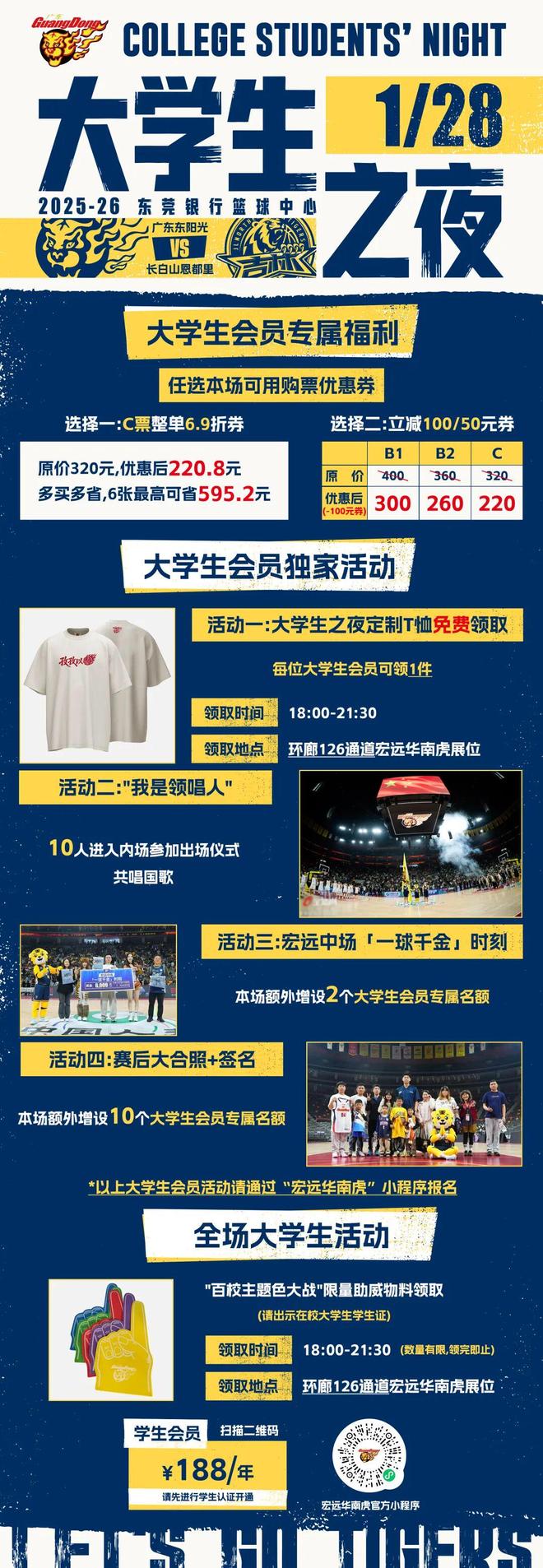 1月28日前瞻 I 广东主场战吉林,「大学生之夜」重磅来袭!