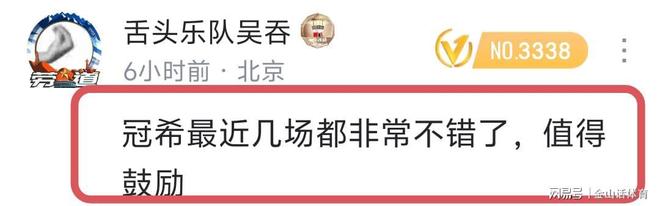 赛后,许多球迷对吴冠希的表现,给予了充分肯定,纷纷表示“不赖冠希,今天燃尽了,他不拼前板也没那两罚。”;“冠希最近几场都非常不错了,值得鼓励。”;“真的不怪冠希,听说都骨裂了,这对罚球肯定有影响,再说,那2罚是他拼老命抢下的前场板,大家真的不能喷他,没他,也许比赛早花了!”……