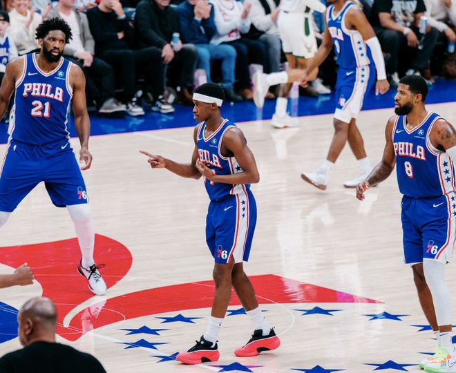 本场比赛马克西表现出色,关键时刻连续拿分,并完成上篮准绝杀,全场拿到40分8助攻。此外,恩比德也有37分8助攻,乔治拿到15分,全队就他们三人得分上双。