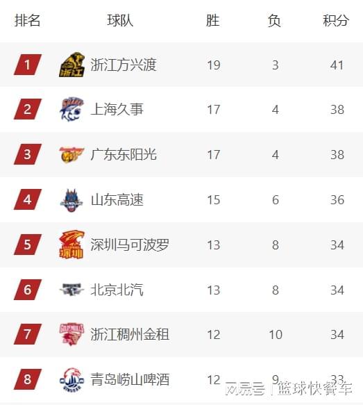 附:CBA积分榜最新排名
