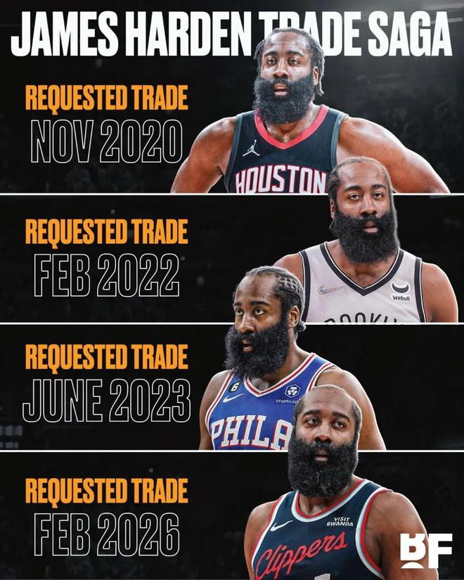 事实上,不只是这次交易,过去发生在哈登身上的每一次交易,从火箭到篮网,从篮网到76人,从76人到快船,每一次哈登都在寻求更好的夺冠机会。