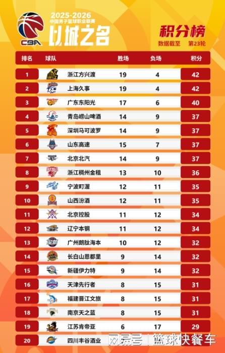 附:CBA积分榜最新排名