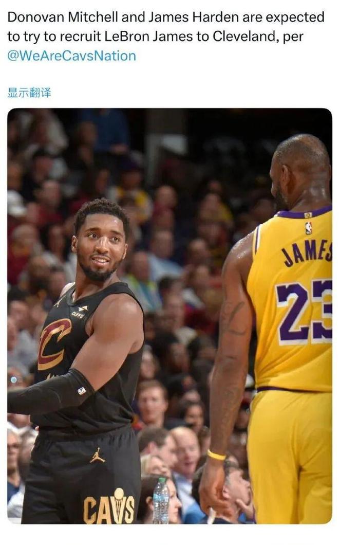 消息人士称,哈登和米切尔与詹姆斯都私交甚笃,如果詹姆斯不选择退役,骑士将在夏天自由市场不遗余力全力追逐阿克伦之子詹姆斯!