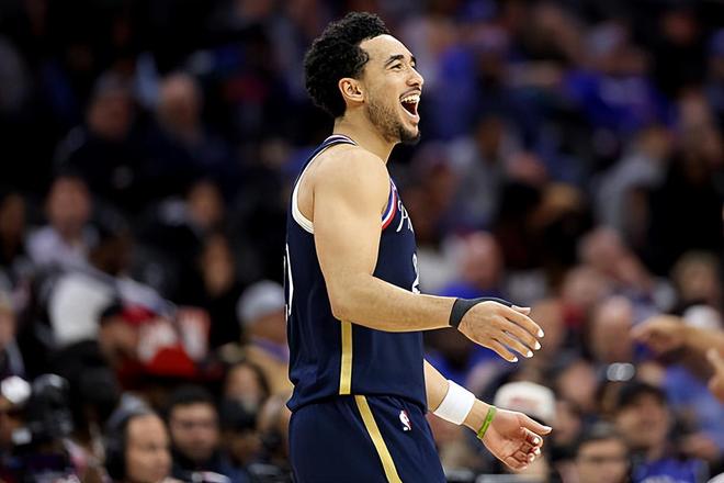 根据ESPN权威记者Shams Charania的报道,费城76人与俄克拉荷马城雷霆完成了一笔交易。76人将后场新星贾里德-麦凯恩(Jared McCain)送到了雷霆,并且从雷霆换来了2026年来自休斯顿火箭的首轮签和3个次轮签。这3个次轮签分别是2027年雷霆、火箭、印第安纳步行者和迈阿密热火中顺位最高的次轮签、2028年密尔沃基雄鹿次轮签和2028年雷霆签。换句话说,为了得到麦凯恩,雷霆付出了不小的代价,用了1个首轮签和3个次轮签才得到了他。