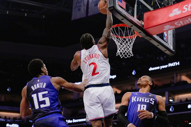 结果首节打完缺兵少将的快船队反而落后两位数,好在小卡率队完成逆转,加上末节国王主动换下主力球员,最终快船以114-111送给国王11连败的同时,也拿下哈登交易离队后的首场胜利。
