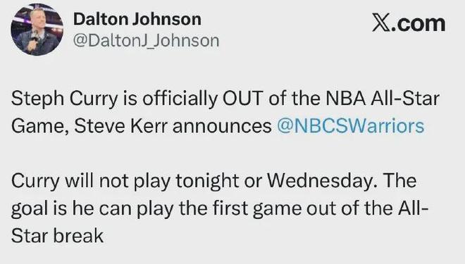 勇士主帅科尔宣布:库里将缺席2026年NBA全明星赛......