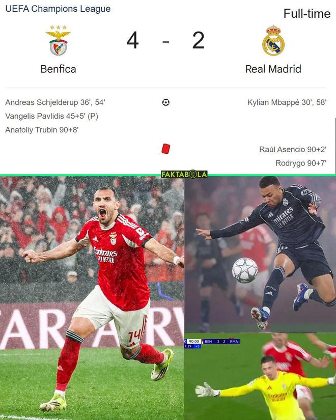 欧冠末轮最大的输家当属皇家马德里。本轮开打之前,皇马高居联赛前8,但面对穆里尼奥执教的本菲卡,他们在客场2-4惨败对手。比赛最后时刻,阿森西奥、罗德里戈先后吃到红牌,导致9人皇马在读秒阶段再丢一球,客场2-4惨败对手。在欧冠舞台上,我们再次见识到了穆里尼奥的神奇之处。本菲卡凭借着这一关键进球,最后时刻跻身24强,获得了欧冠淘汰附加赛的资格。
