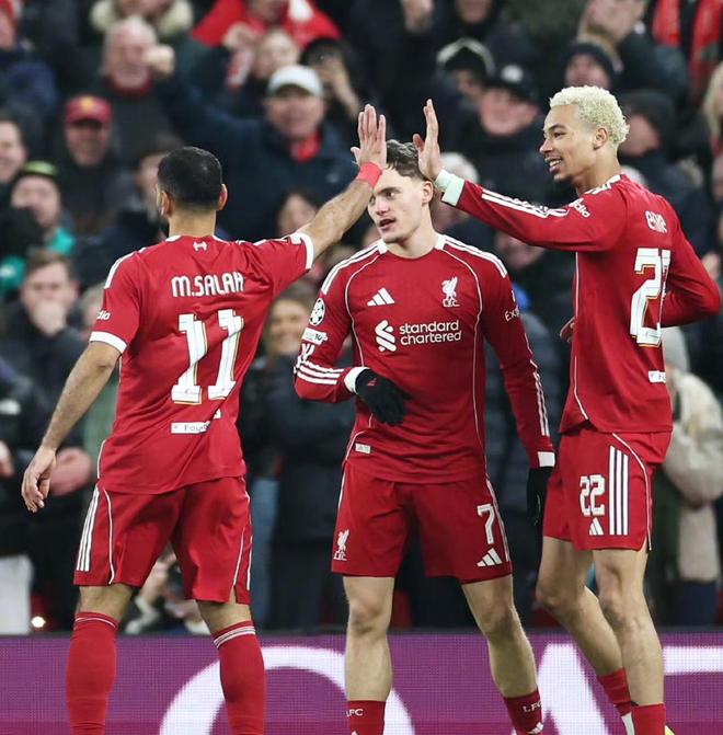 利物浦在主场取得了一场大胜,他们以6比0击败了卡拉巴赫,亚历克西斯·麦卡利斯特在比赛中完成梅开二度,萨拉赫、哈弗茨和埃基蒂克也分别建功,这场胜利为利物浦的联赛阶段征程画上了强势的句号。