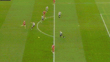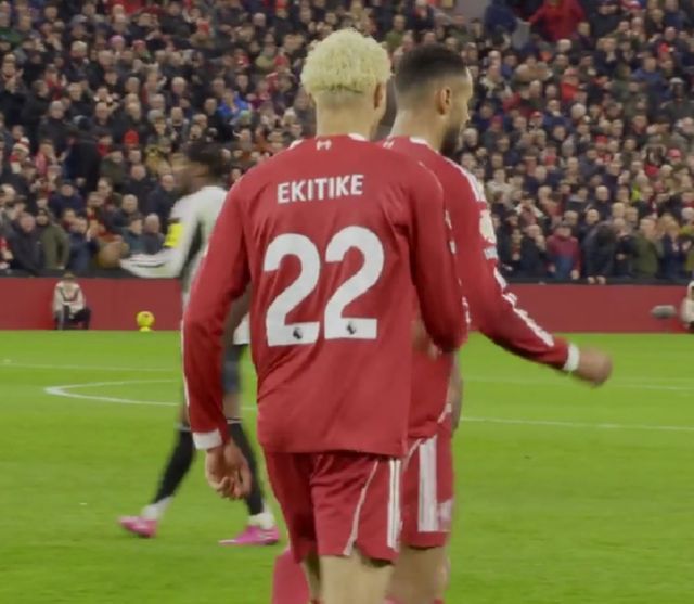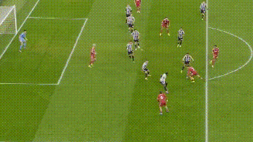 上半场,在被戈登率先进球之后,维尔茨站了出来,他在禁区内漂亮过人后横敲,埃基蒂克跟进一脚近距离推射,稳稳把球打进,为利物浦扳平比分。之后不久,埃基蒂克再进1球,半场结束,利物浦2-1反超比分。