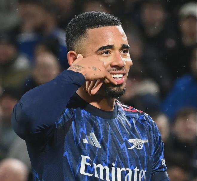 热苏斯至今进球的英超比赛,从来没有输过:64场联赛,59胜5平。