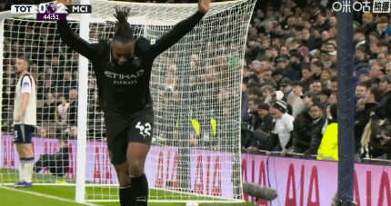 第44分钟,B席禁区内横传,塞门约轻松抽射破门,曼城2-0热刺