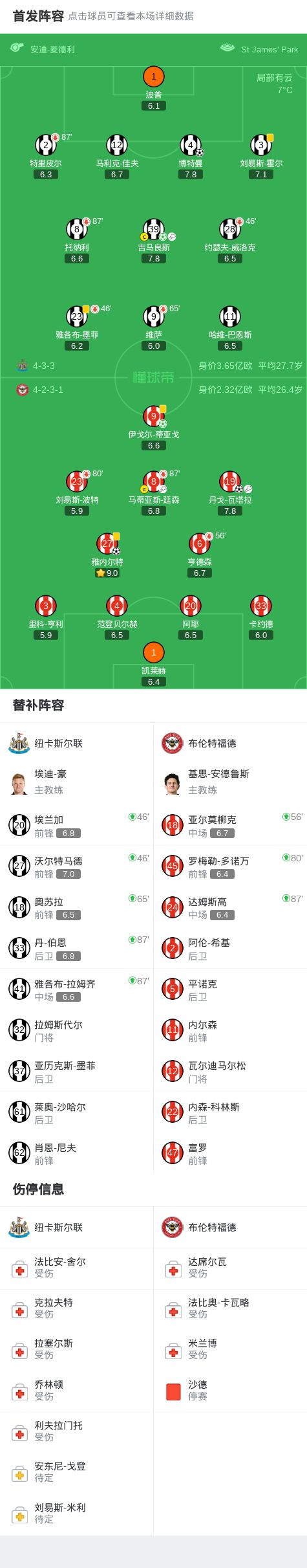 北京时间2月8日英格兰足球顶级联赛 联赛 第25轮,纽卡斯尔联主场对阵布伦特福德。纽卡斯尔联博特曼破门,吉马良斯破门。布伦特福德雅内尔特破门,丹戈-瓦塔拉破门,伊戈尔-蒂亚戈破门。最终比分纽卡斯尔联 2-3 布伦特福德。