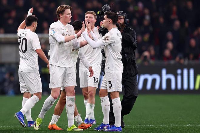第20分钟,两位曼联弃将联手为那不勒斯扳平比分。麦克托米奈劲射被扑出,霍伊伦补射建功,场上比分变为1-1。