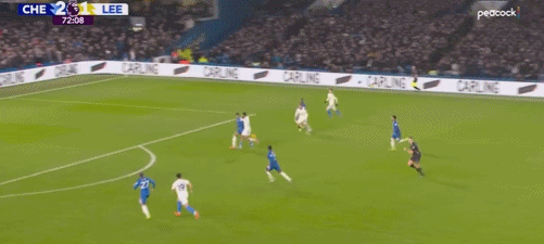 第17分钟,恩佐策动反击,库库雷利亚左路倒三角低平球传中,格鲁耶夫回追拦截,帕尔默踢空并且手球,浪费了一次不错的机会。第21分钟,恩佐禁区前沿送出挑传,若昂-佩德罗半单刀抽射踢疵,达洛及时出击将球没收。