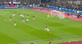 第49分钟,鲍文传中横扫门前,绍切克近距离抢点破门,西汉姆联1-0曼联。