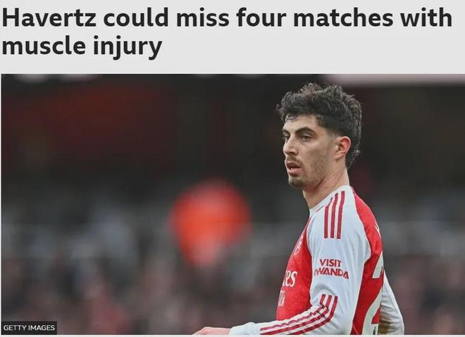 BBC记者AH消息,哈弗茨近日肌肉受伤,这名球星可能会缺席4场阿森纳的比赛,分别是:布伦特福德、维冈竞技、狼队和热刺。