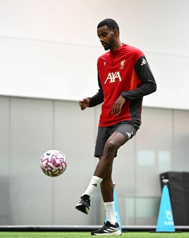 康复进行中,利物浦官方晒伊萨克在室内进行个人训练照片