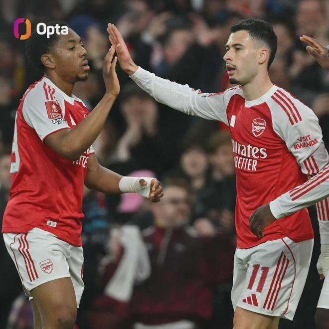 Opta统计,阿森纳成为了英超成立以来(92-93赛季),首支在足总杯比赛前30分钟就打进4球的英超球队。