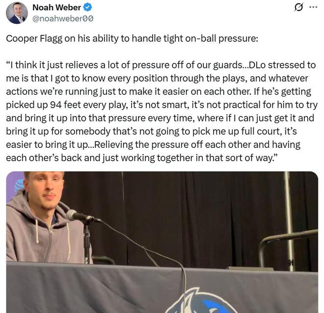 弗拉格表示这将会减轻球队后卫的压力,赛前拉塞尔就告诉我,必须了解球队每个战术,每个位置的角色,以方便我们执行战术打配合,这样才会让我们彼此打得更加轻松。