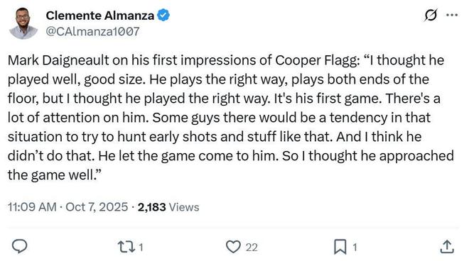 轻取卫冕冠军雷霆队,新科状元弗拉格首秀打出满分表现!新赛季西部大乱斗再添三状元争冠大热门独行侠。